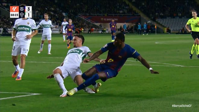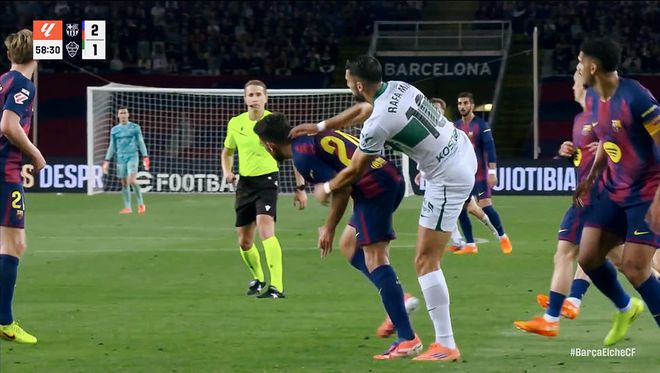 第42分钟,埃尔切后场一脚传递,直接打穿巴萨的防守!拉法米尔拿球奔袭半个球场,禁区内推射远角得手,2:1!埃尔切扳回一城。补时阶段,德容手术刀直塞,费兰托雷斯近在咫尺的射门,被佩尼亚神奇扑出。